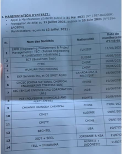 نلفت انتباه السلطات العليا في البلاد ان المجمع الصيني سيتيك ذكر وزارة الطاقة بالالتزامات التعاقدية بخصوص سرية المعلومات التقنية لمشروع الفوسفات المدمج وذلك في مراسلة بتاريخ 21 جوان 2021